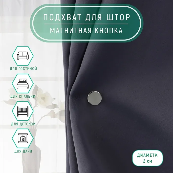 Подхват для штор «Магнитная кнопка», на прокол, d=2 см, 2 шт.