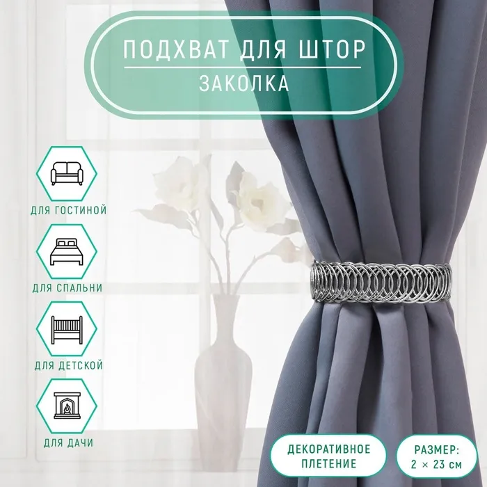 Подхват для штор «Кольцо», 2 × 23 см, цвет серебряный