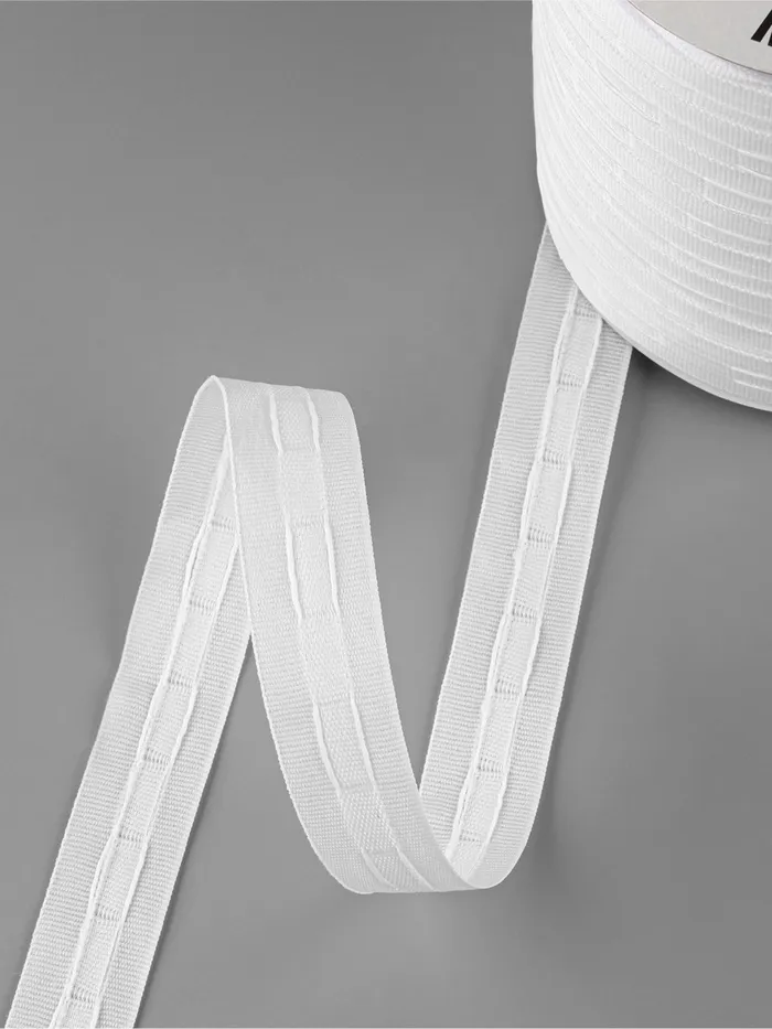Шторная лента, классическая, матовая, 25 мм, 100±1 м, 2 шнура, белая