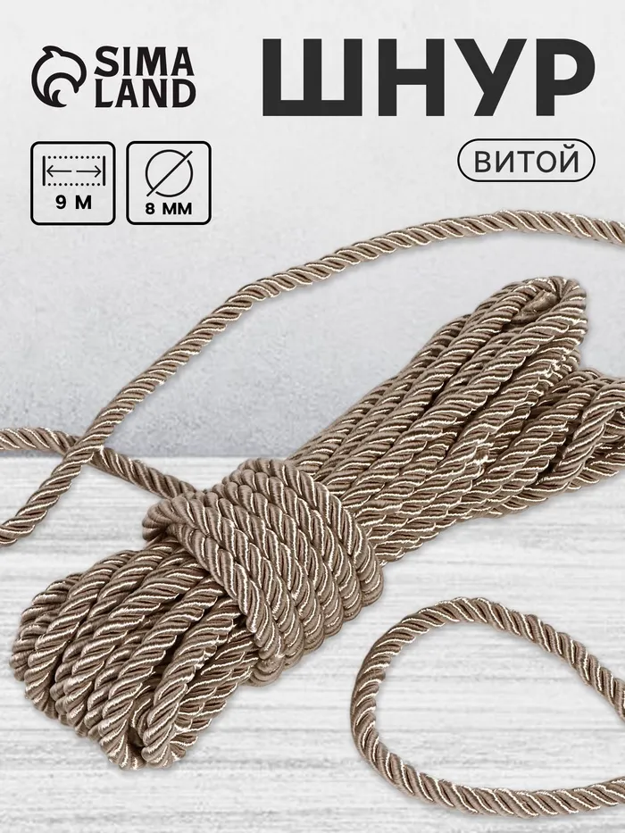 Шнур витой, d=8 мм, 9±1 м, светло-серый