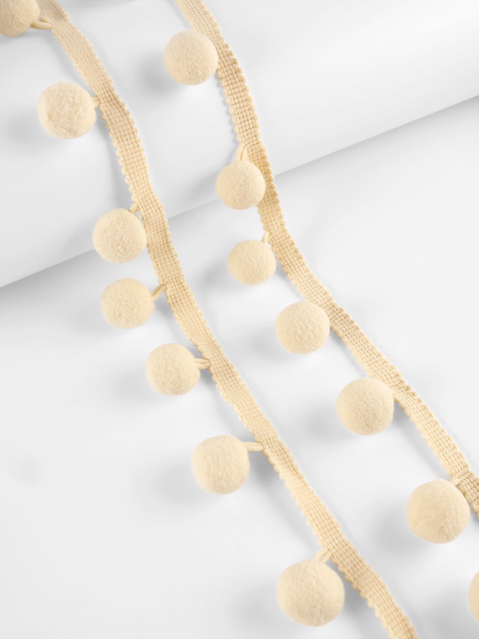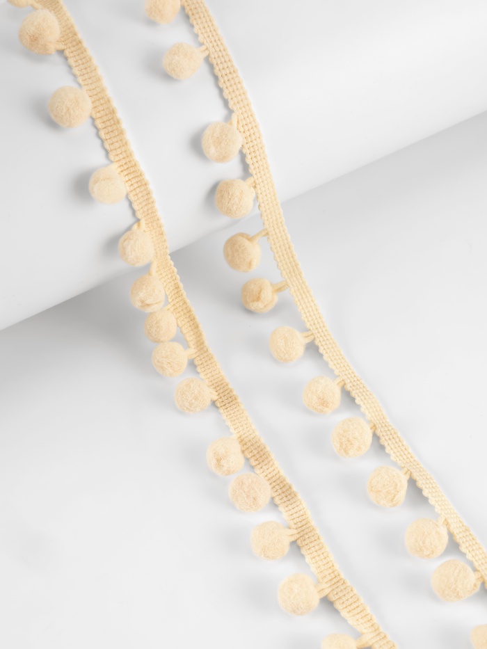 Тесьма декоративная с помпонами, 25±5 мм, 9.1±0.5 м, бежевая