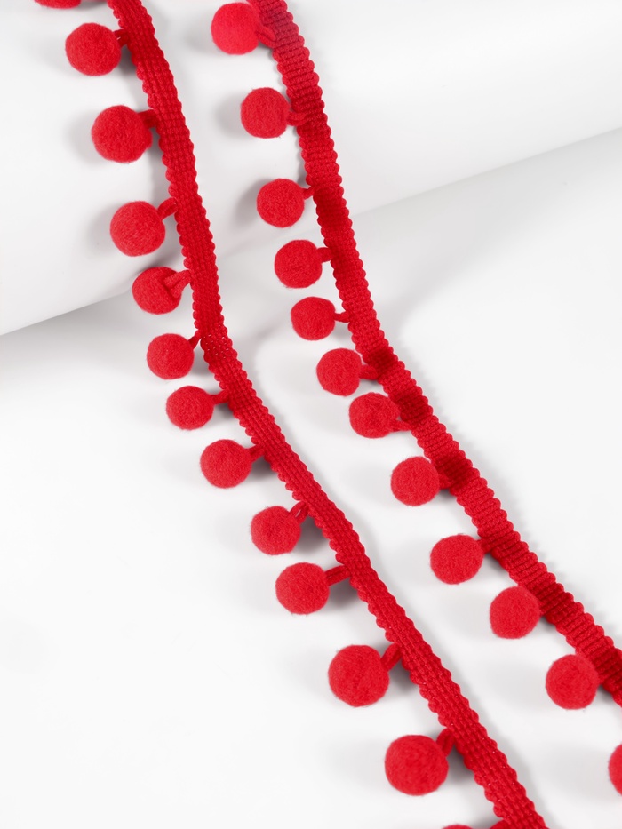 Тесьма декоративная с помпонами, 25±5 мм, 9.1±0.5 м, красная