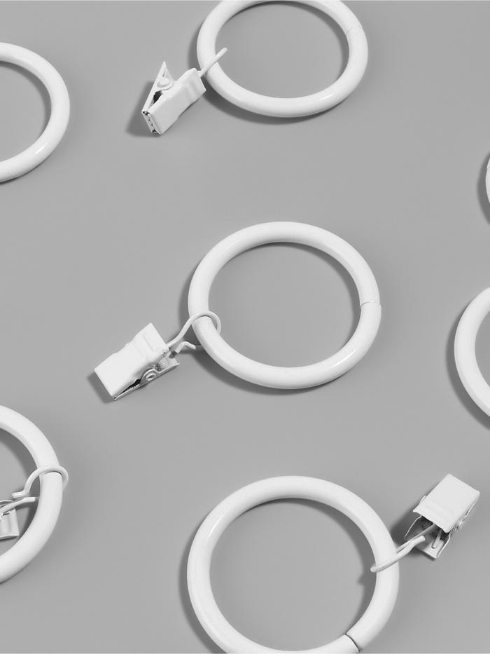Кольцо для карниза, с зажимом, d=38/48 мм, 10 шт., белое