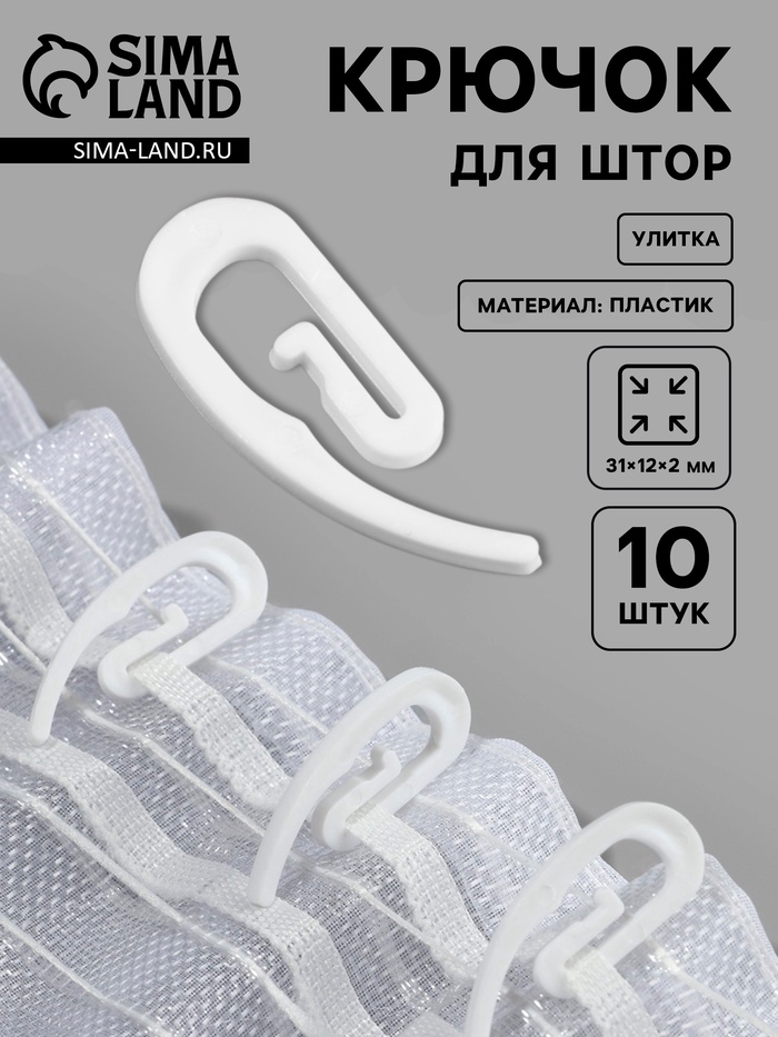 Крючок для штор «Улитка», 31×12×2 мм, 10 шт., белый