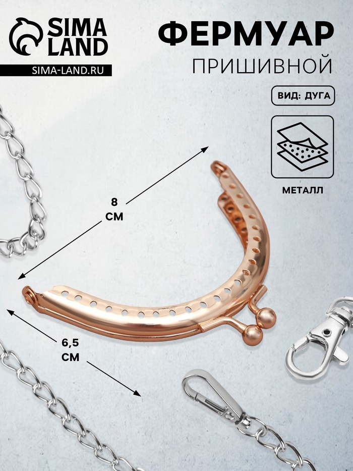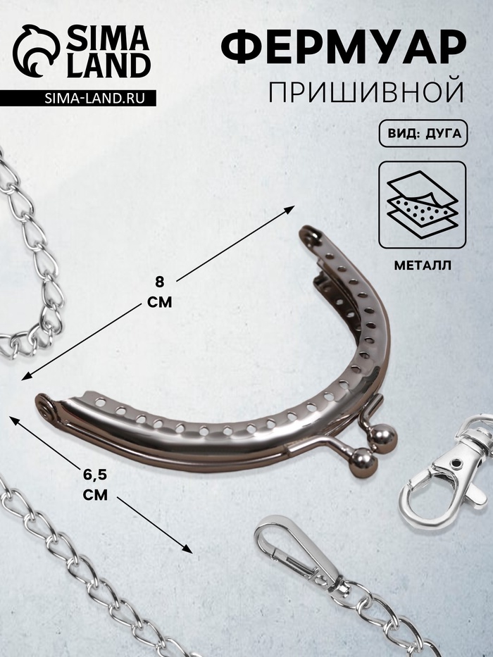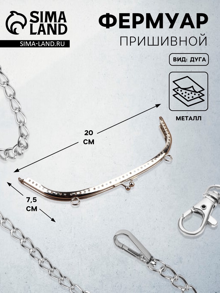 Фермуар пришивной «Полукруг», с креплениями, 20×7.5 см, цвет серебряный