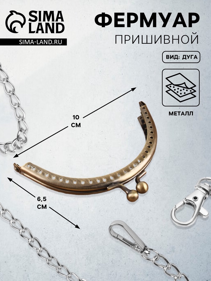 Фермуар пришивной «Полукруг», 10×6.5 см, цвет бронзовый