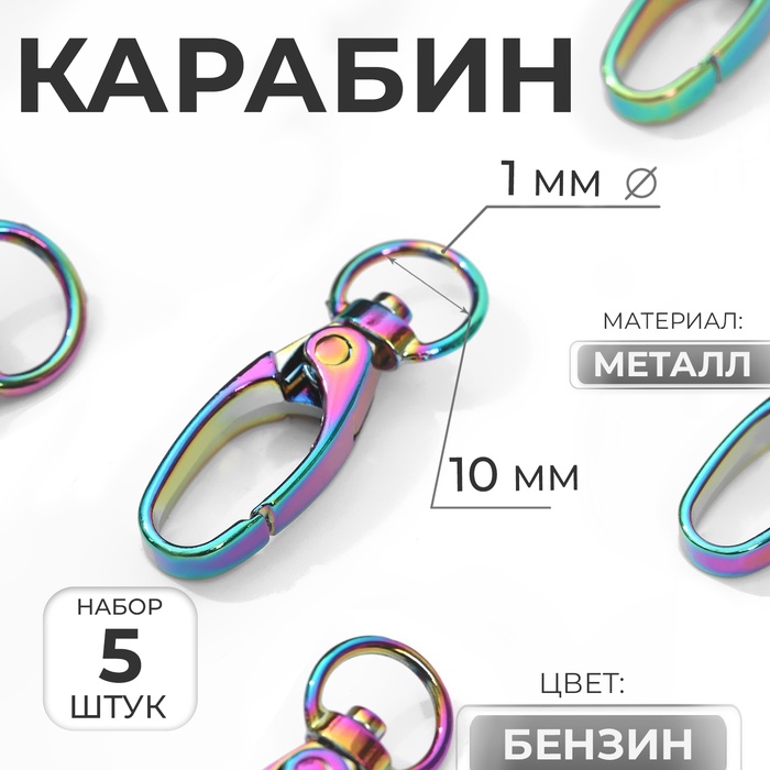 Карабин металлический, 40×14 мм / 10×1 мм, 5 шт., разноцветный