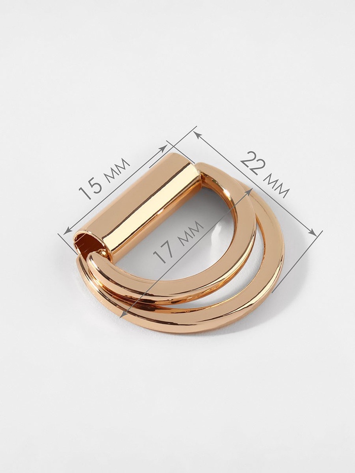 Полукольцо для сумок двойное, d=15 мм, толщина - 1 мм, 2 шт., цвет золотой