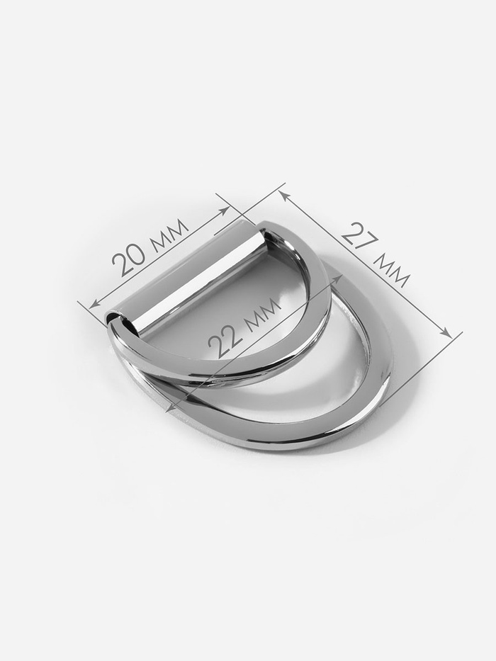 Полукольцо для сумок двойное, d=20 мм, толщина - 1 мм, 2 шт., цвет серебряный