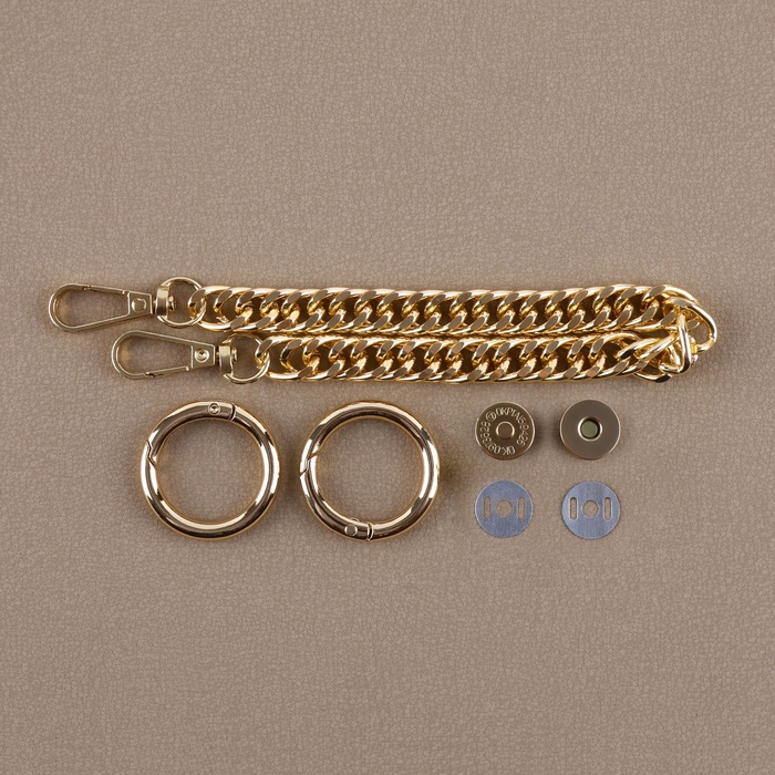 Набор для создания сумки, 4 предмета, кольцо-карабин - 2 шт, цепочка, кнопка магнитная, цвет золотой