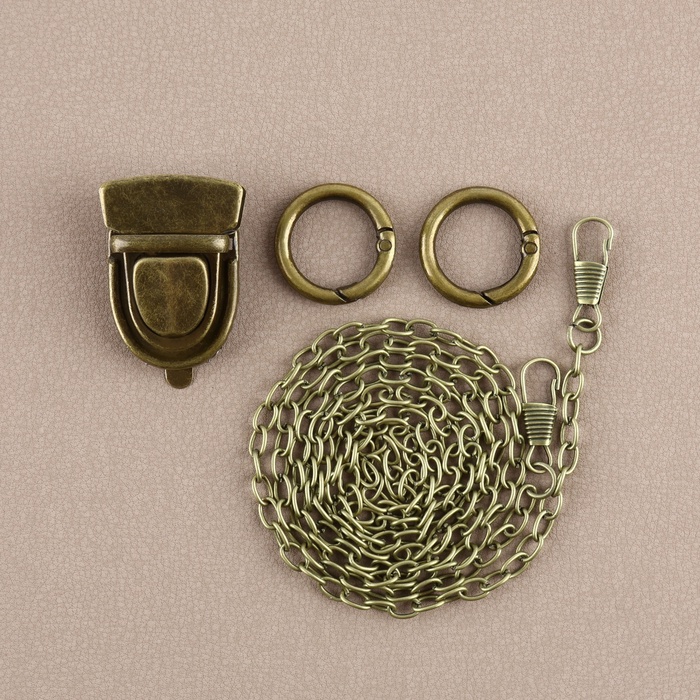 Набор для создания сумки, 4 предмета, кольцо-карабин - 2 шт, цепочка, застёжка, цвет бронзовый