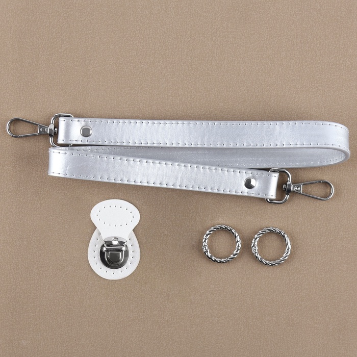 Набор для создания сумки, 4 предмета, кольцо-карабин - 2 шт., ручка, застёжка, белый, серебряный