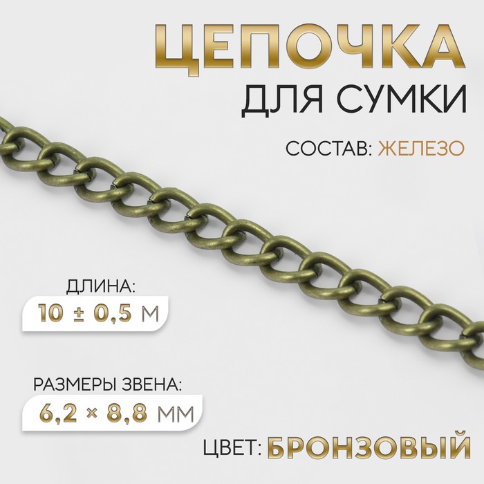 Цепочка для сумки, 6.2×8.8 мм, 10±0.5 м, цвет бронзовый