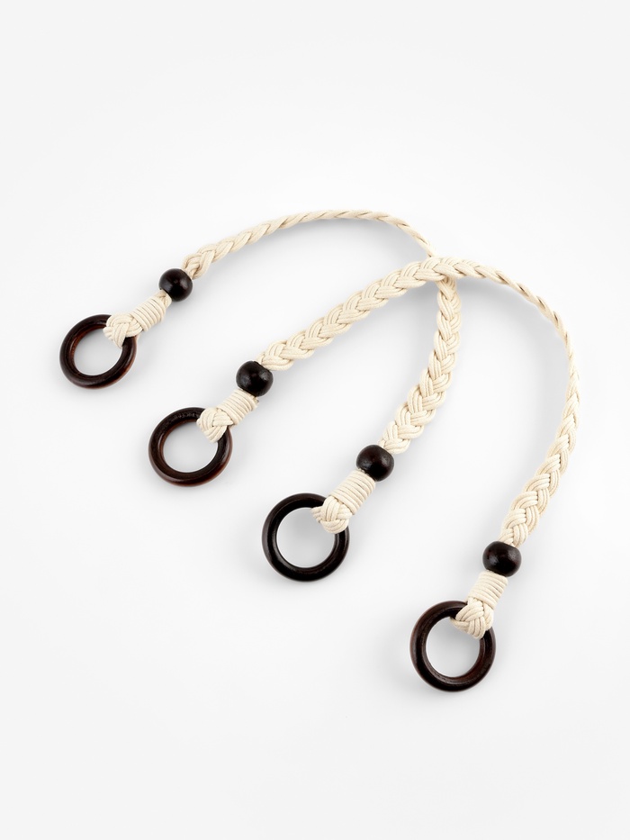 Ручки для сумки, 2 шт., вощёный шнур/дерево, 48×2 см, бежевые
