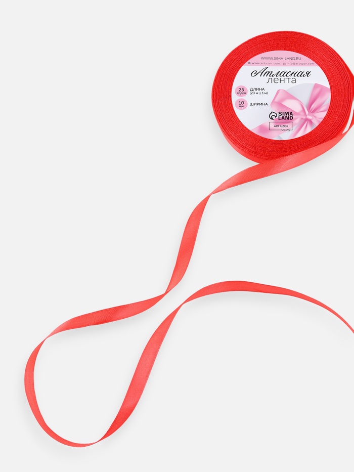 Лента атласная, 10 мм, 23±1 м, коралловая №129