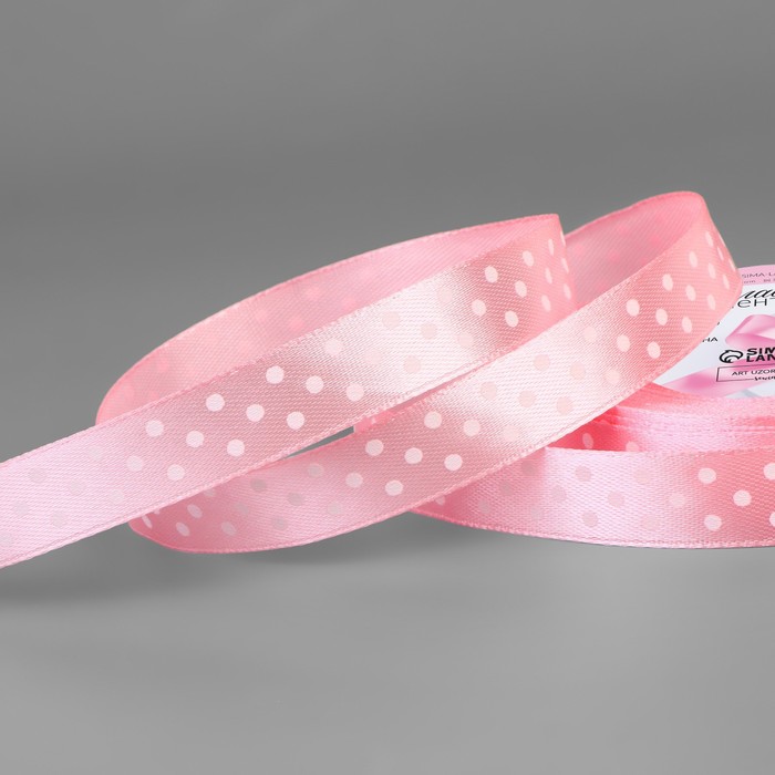 Лента атласная «Горошек», 15 мм, 23±1 м, розовая №004