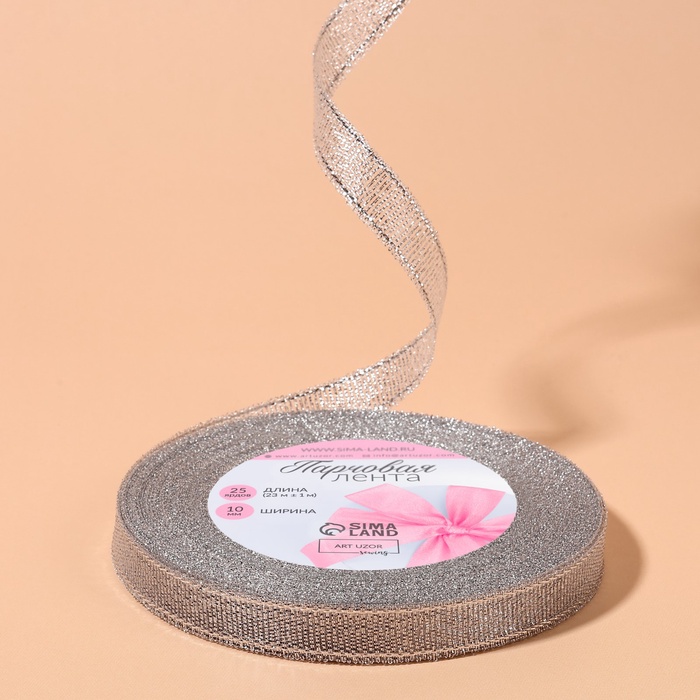 Лента парчовая, 10 мм, 23±1 м, цвет серебряный