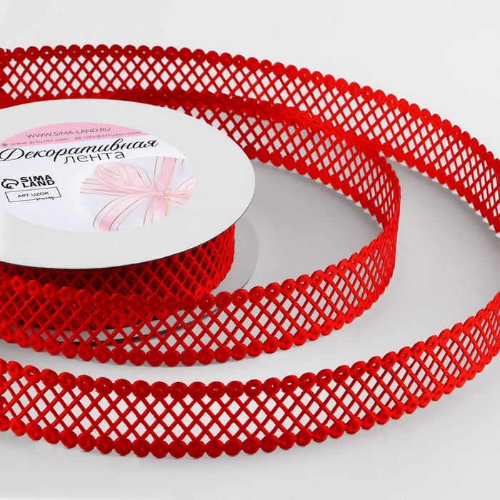 Лента фигурная «Ромбы резные», 25 мм, 9±0.5 м, красная
