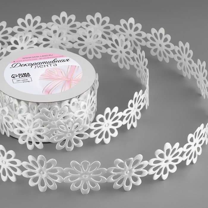 Лента фигурная «Ромашки», 25 мм, 9±0.5 м, белая