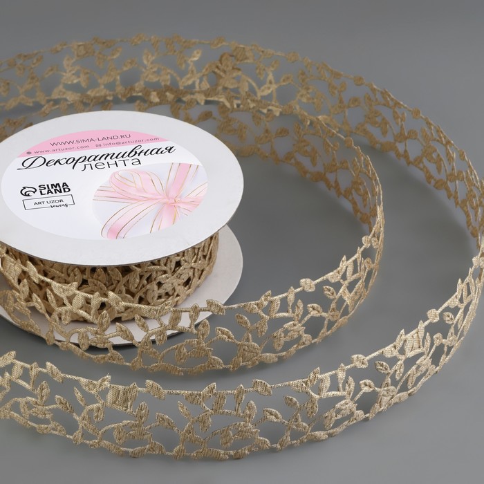 Лента фигурная «Ветви», 30 мм, 9±0.5 м, цвет золотой