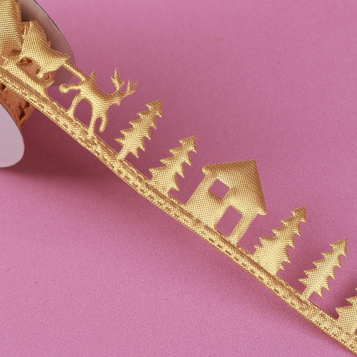 Лента декоративная фигурная «Новогодний лес», 30 мм, 9 ± 0,5 м, цвет золотой