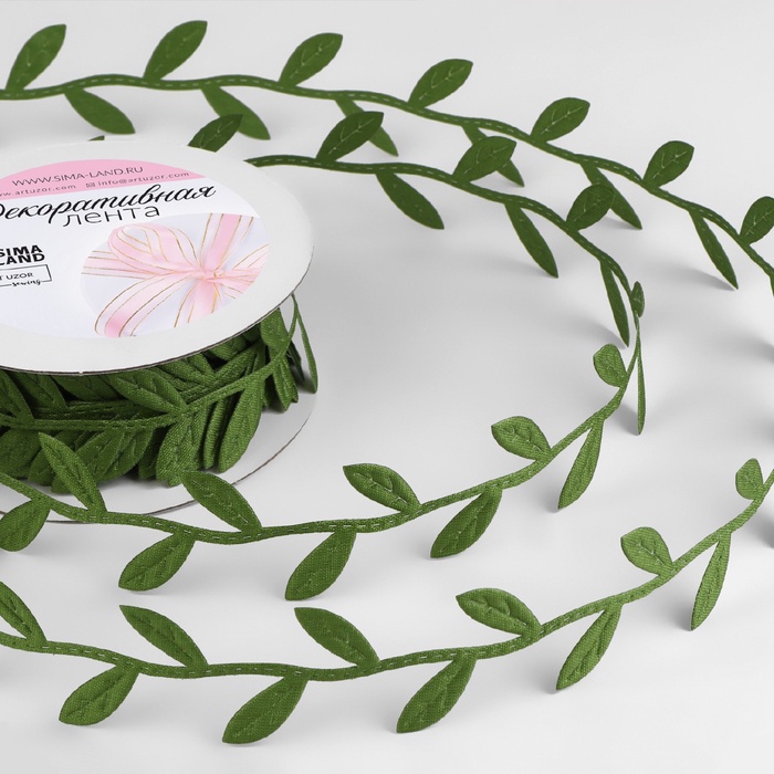 Лента фигурная «Листья», 25 мм, 9±0.5 м, тёмно-зелёная