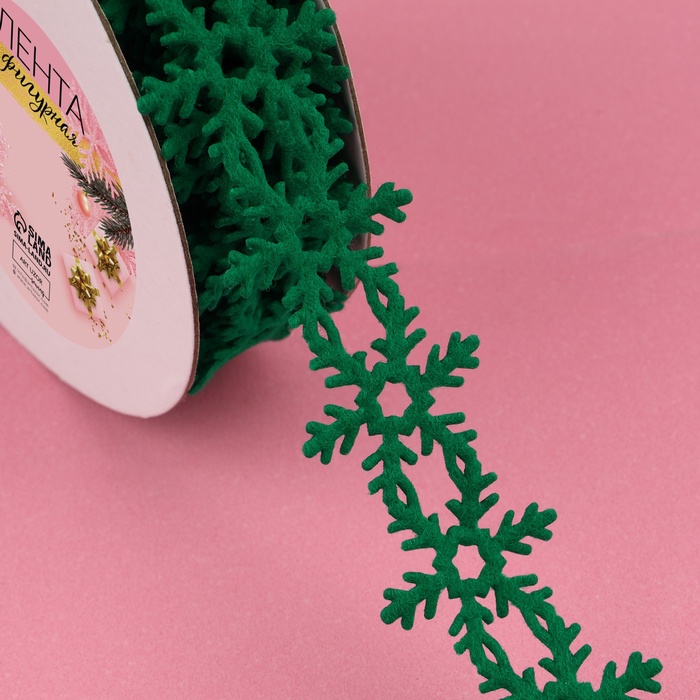 Лента декоративная фигурная «Снежинки», 25 мм, 9±0.5 м, зелёная