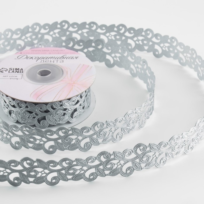 Лента фигурная «Ветвь», 26 мм, 9±0.5 м, цвет серебряный
