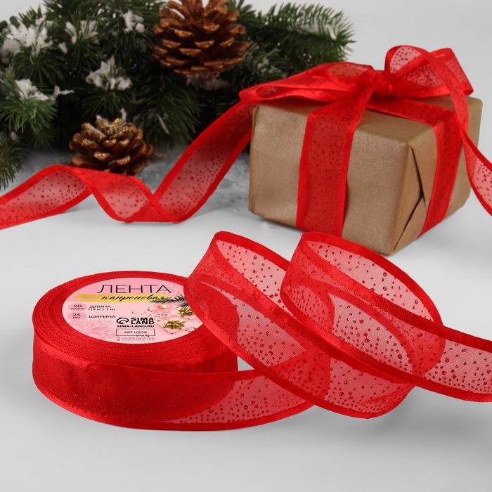 Лента капроновая «Блёстки», 25 мм, 18±1 м, красная