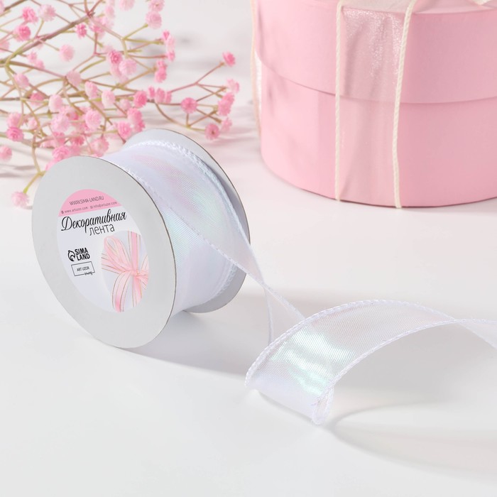 Лента капроновая «Волна», с радужным переливом, 38 мм, 9.1±0.5 м, белая