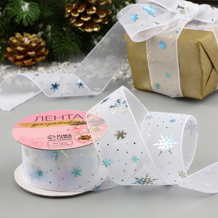 Лента капроновая «Снежинки», 40 мм, 9±0.5 м, белая