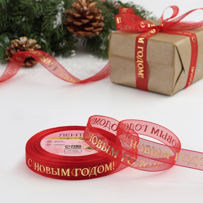 Лента капроновая с тиснением «С Новым годом», 15 мм, 23±1 м, красная
