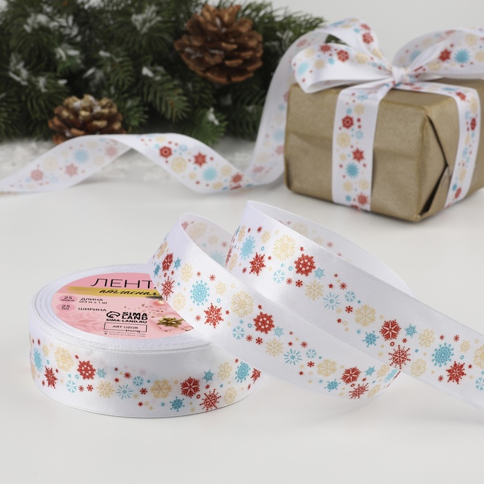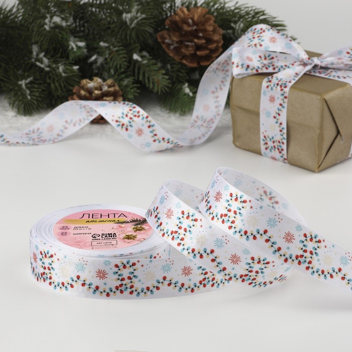 Лента атласная «Снежный карнавал», 25 мм, 23±1 м, белая