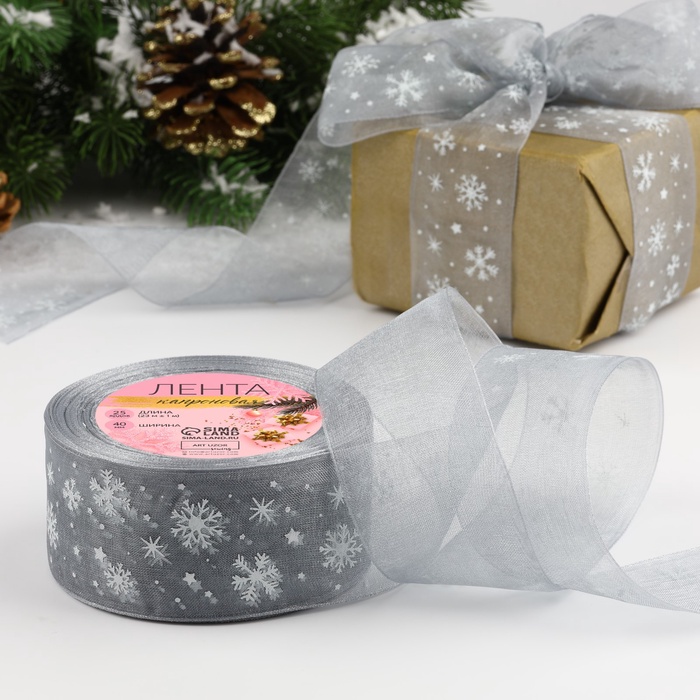 Лента капроновая «Снежинки», 40 мм, 23±1 м, серая, белая
