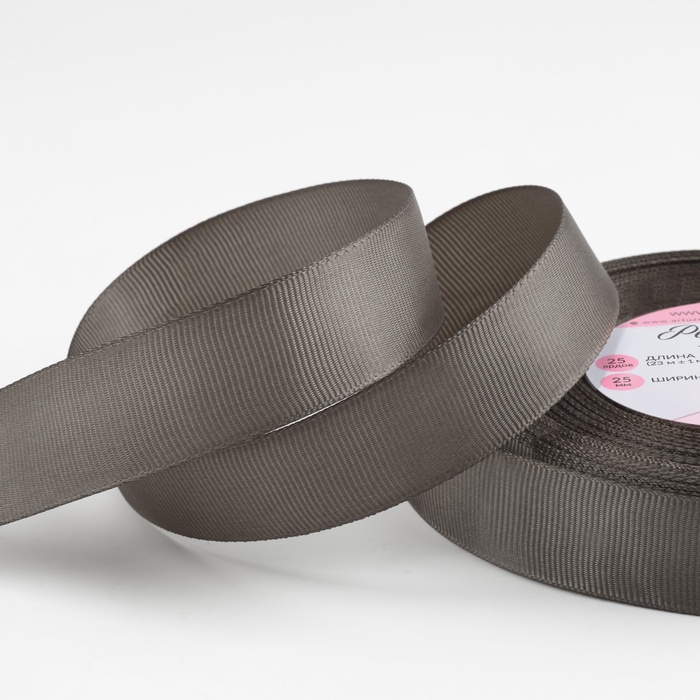 Лента репсовая, 25 мм, 23±1 м, серая №107