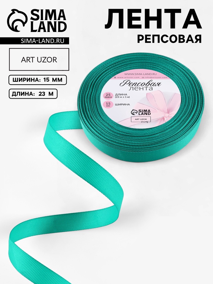 Лента репсовая, 15 мм, 23±1 м, изумрудная №209