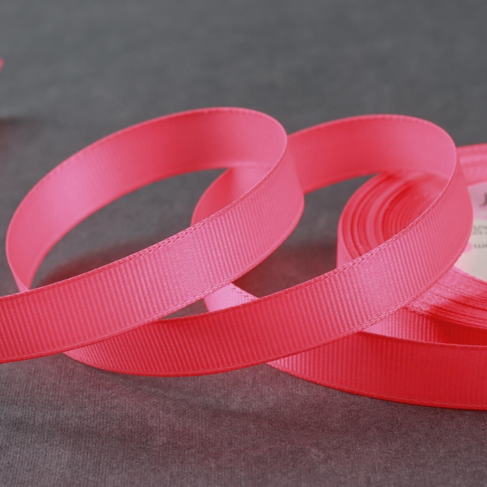Лента репсовая, 15 мм, 23±1 м, неоново-розовая №14