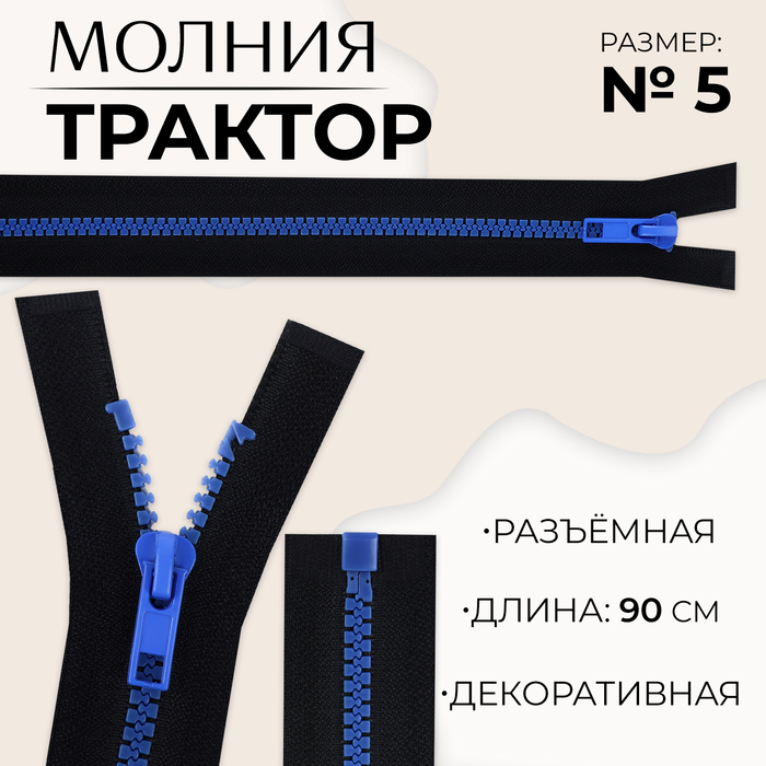 Молния «Трактор», №5, разъёмная, замок автомат, 90 см, чёрная, синяя