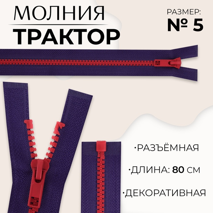 Молния «Трактор», №5, разъёмная, замок автомат, 80 см, синяя, красная