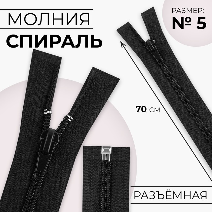 Молния «Спираль», №5, разъёмная, замок автомат, 70 см, чёрная