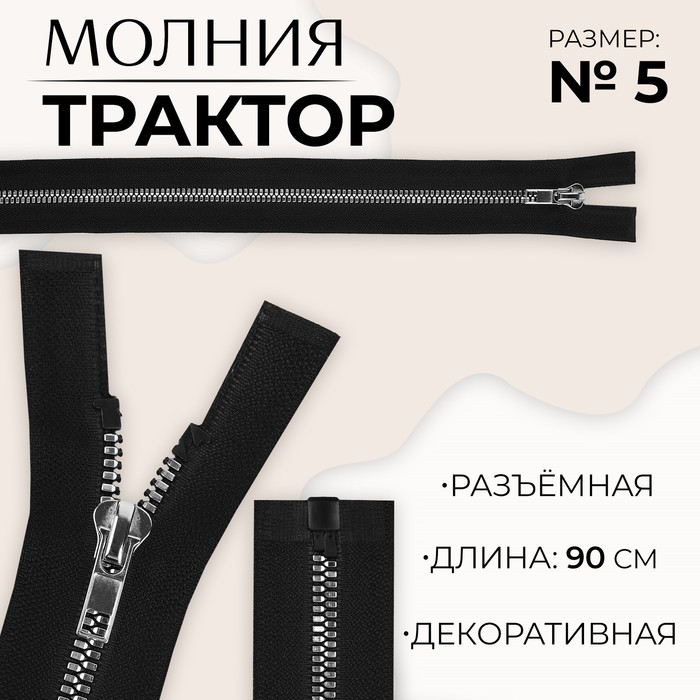 Молния «Трактор», №5, разъёмная, замок автомат, 80 см, светло-бежевая