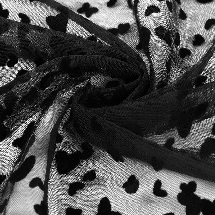 Сетка с флоком «Сердечки», 150 см, 1±0.2 м, чёрная