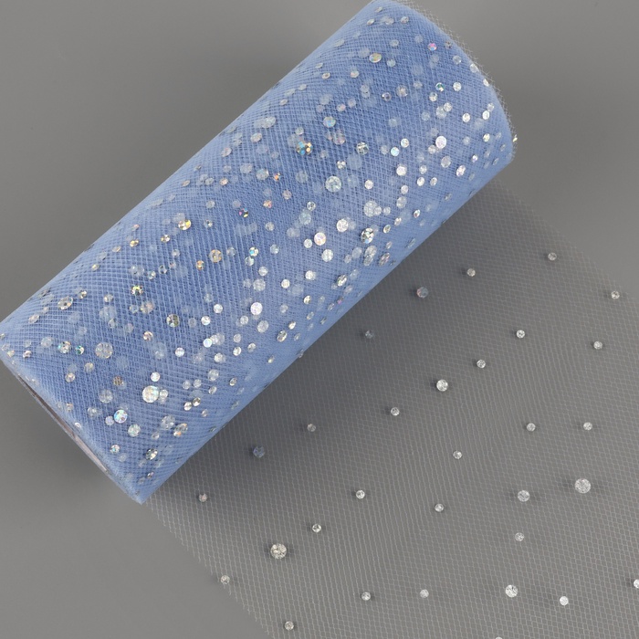 Фатин с глиттером, 15 см, 9±0.5 м, 11±1 г/м², голубой №07