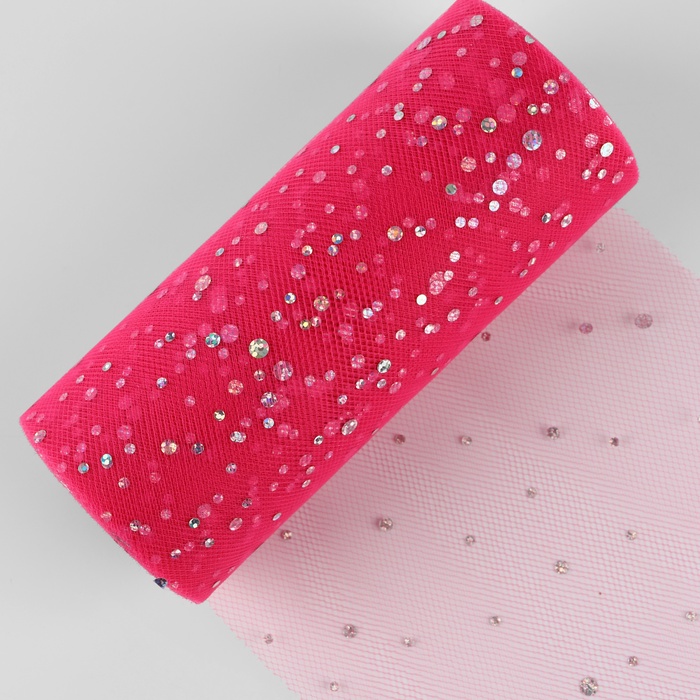 Фатин с блёстками, 15 см, 23±1 м, 11±1 г/м², ярко-розовый №61