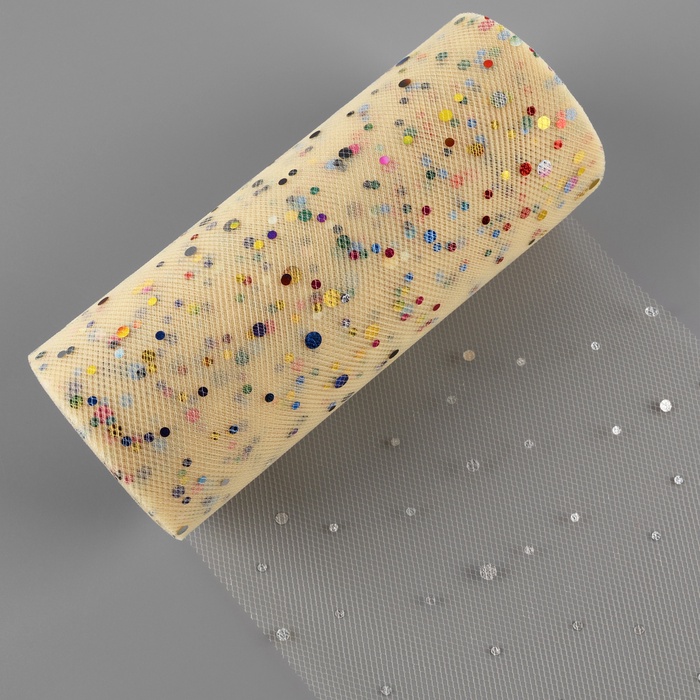 Фатин с разноцветными блёстками, 15 см, 23±1 м, 11±1 г/м², бежевый №4