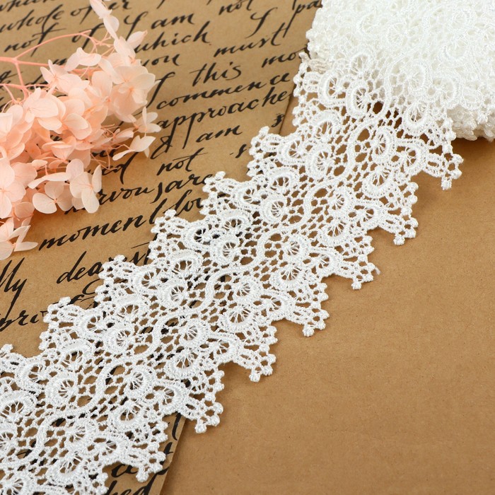 Кружево гипюровое, 94 мм, 11±1 м, цвет белый
