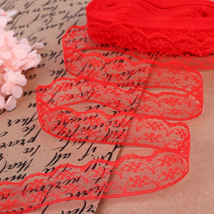 Кружево капроновое, 22 мм, 10±1 м, цвет красный №20