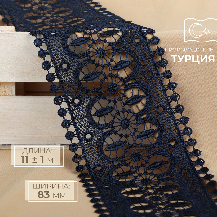 Кружево гипюровое, 83 мм, 11±1 м, цвет тёмно-синий