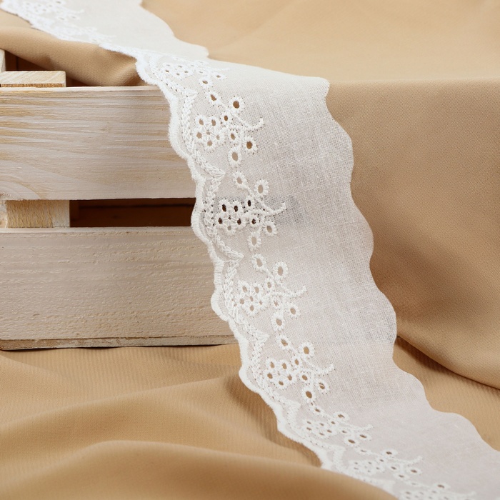 Кружево шитьё, 55 мм, 13±1 м, белое
