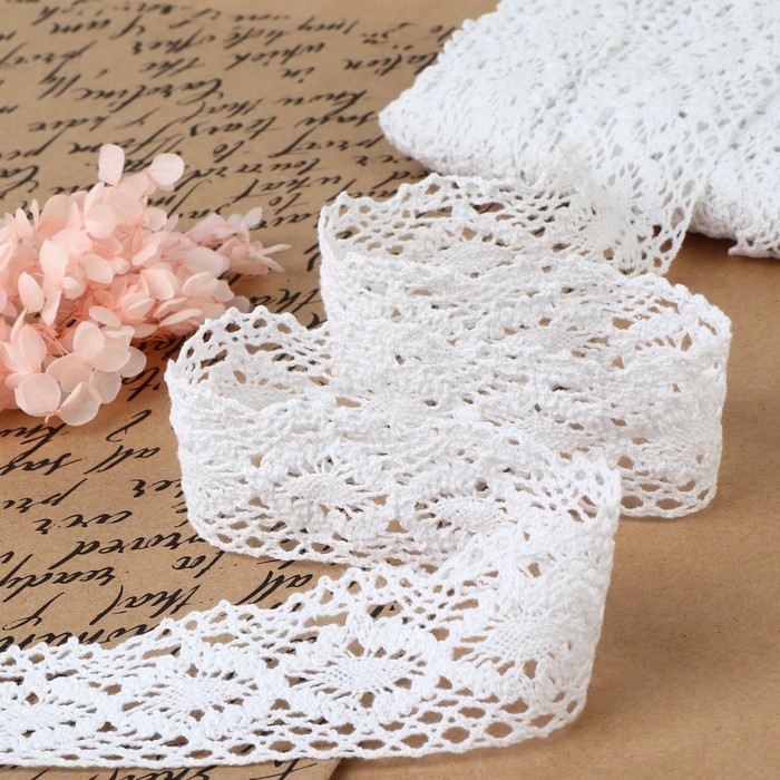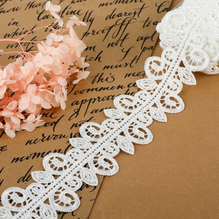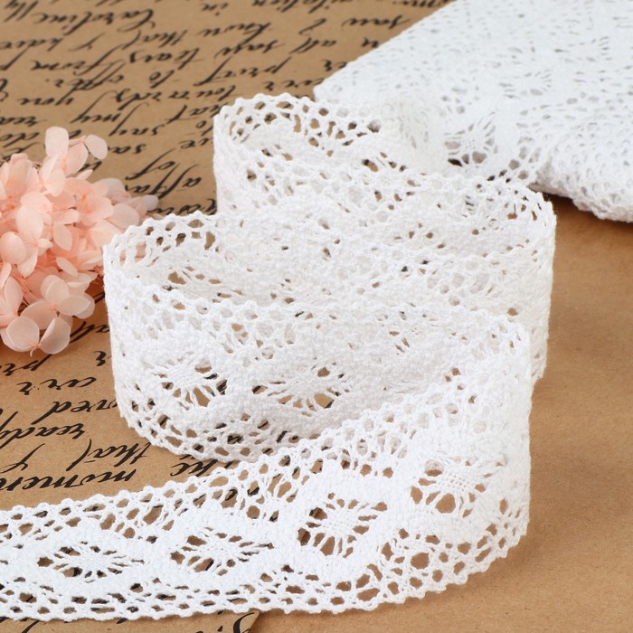 Кружево гипюровое, 50 мм, 9±0.5 м, цвет белый